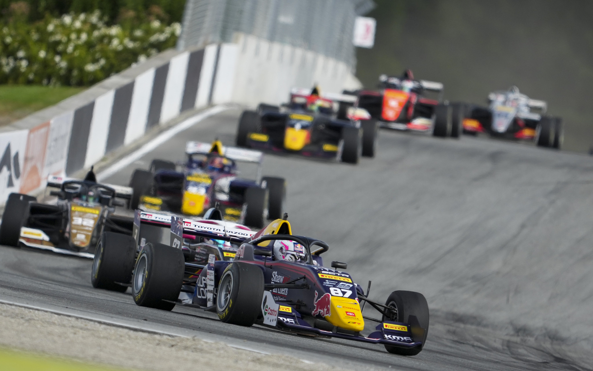 Arvid Lindblad, series champion and Red Bull junior team member, was a fighting third driving a spare car.