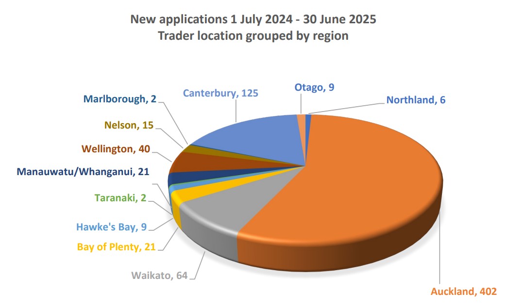 “The 716 new applications received came from throughout the country… [but] the majority of new applications involved motor vehicle traders in the Auckland region,” the report says.
